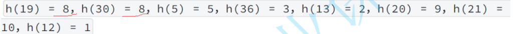 下面使用线性探测法建立hash表的过程