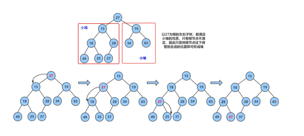 向下调整算法示意图: