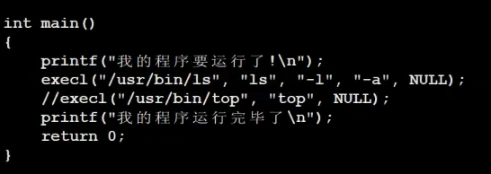 如以上代码当执行到execl时下面代码会直接被execl直接替换。