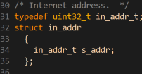 in_addr⽤来表⽰⼀个IPv4的IP地址. 其实就是⼀个32位的整数;