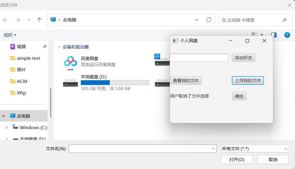本项目采用java编写,用javaFx做可视化处理,主要用于个人数据的保存,后续还会开发好友之间文件的分享,通过个人数据上传到服务端保存,在需要时可以下载